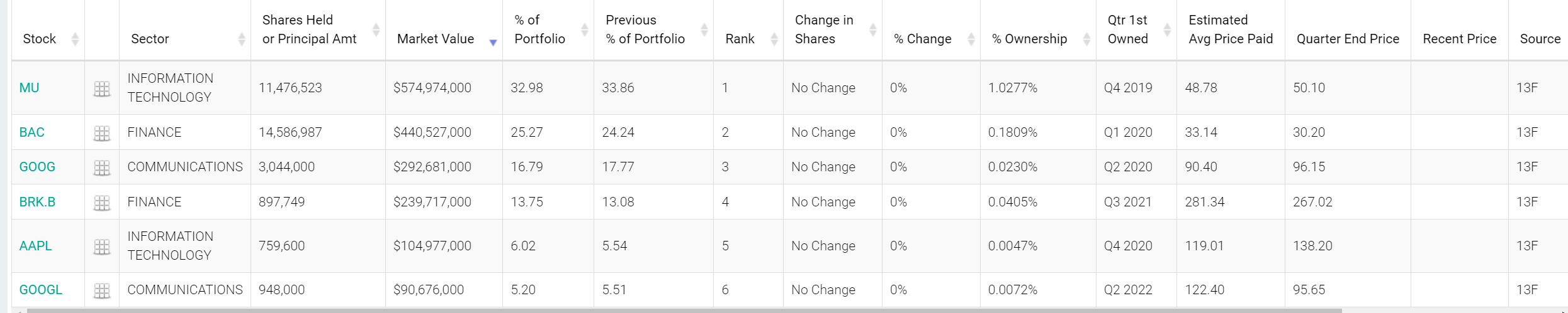 다만 주식 외 채권. 원자재. 공매도포지션 등 은 확인하실 수 있으며 전 분기 내용만 확인 가능하시니 실시간 포트폴리오가 아니라는 점 다시 한번 주의하시길 바랍니다.