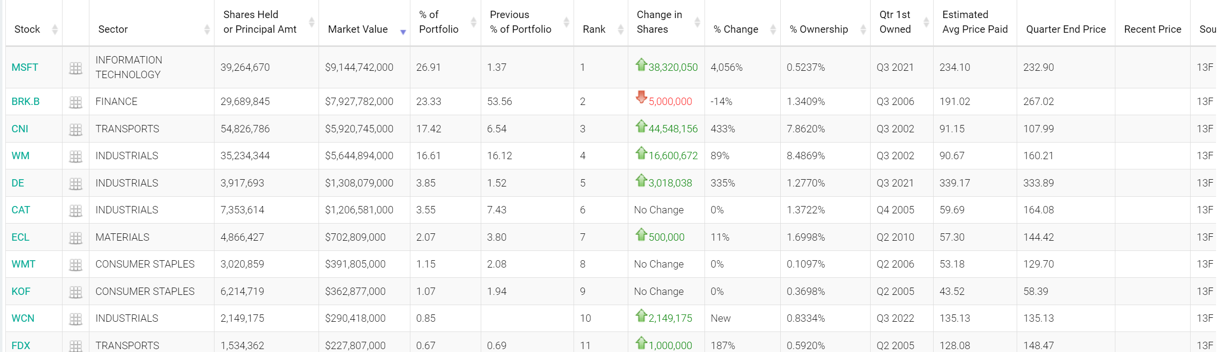 13F를 통하여 기관투자자들의 매수세 매도세, 모든 기관투자자들의 투자섹터와 자산현황, 투자통계를 확인하실 수 있습니다.